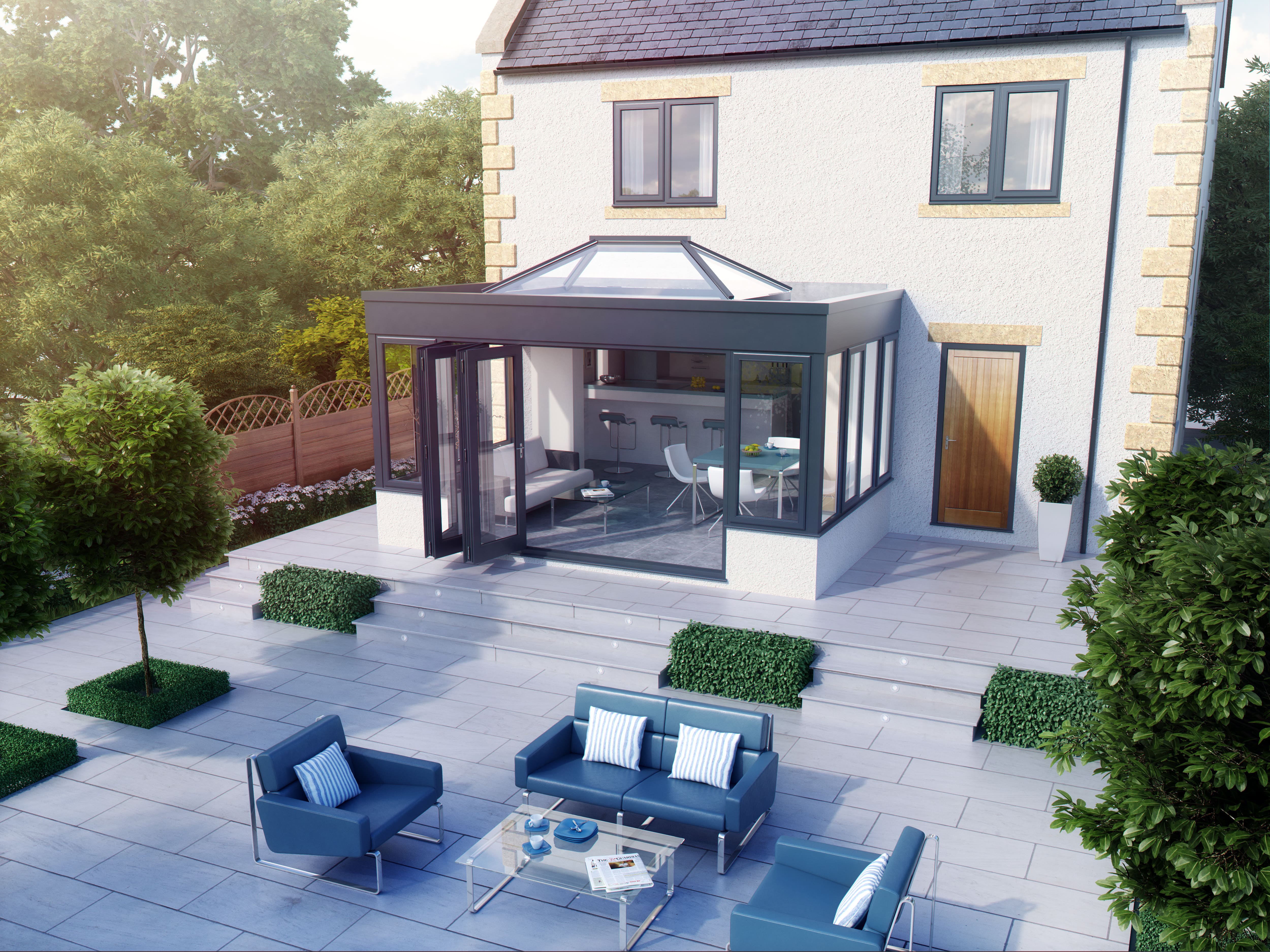 The contemporary design has a clean, minimalist look featuring four sections of glass. As there are no rafters, the larger glass areas provide more uninterrupted views of the sky above, and are the perfect compliment to extensions with large glazing panels.